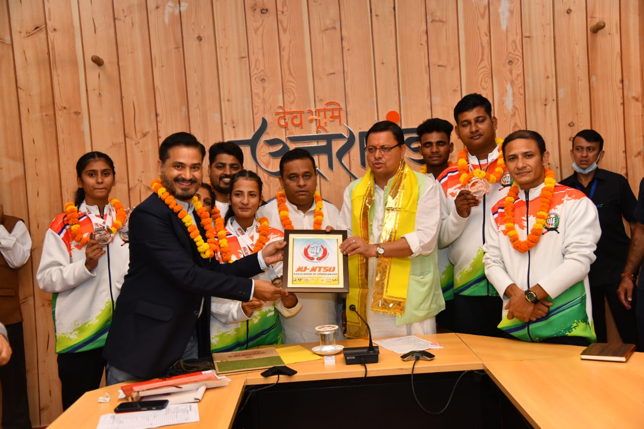 पांचवी एशियन जु-जित्सु चैंपियनशिप के पदक विजेता पहुंचे उत्तराखंड, मुख्यमंत्री पुष्कर सिंह धामी ने किया खिलाड़ियों को सम्मानित