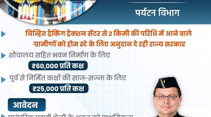 ट्रैकिंग ट्रैक्शन सेंटर होम स्टे अनुदान योजना से स्थानीय युवाओं को मिल रहा लाभ, उत्तराखंड में पर्यटन को बढ़ावा देना में मुख्यमंत्री पुष्कर सिंह धामी की महत्वपूर्ण पहल