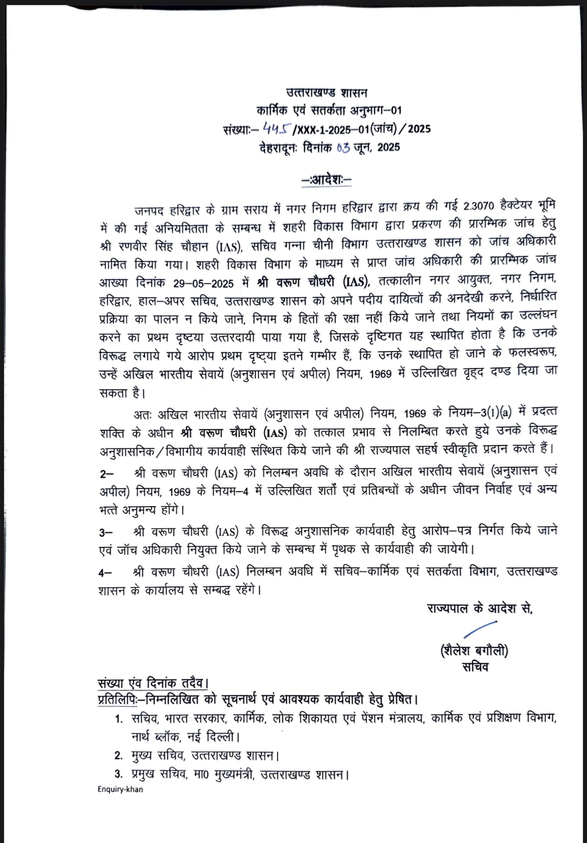 वरुण चौधरी, पूर्व नगर आयुक्त, हरिद्वार: उन्होंने बिना उचित प्रक्रिया के भूमि क्रय प्रस्ताव पारित किया और वित्तीय अनियमितताओं में प्रमुख भूमिका निभाई।